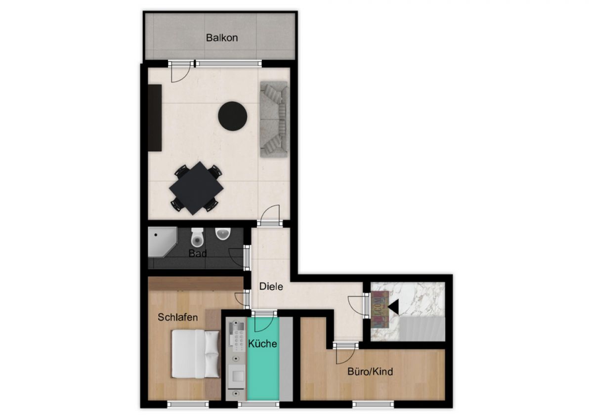 In dem großen Wohn-Essbereich können Sie sich gestalterisch ausleben! Von hieraus gelangen Sie auch auf den Balkon. Dort können Sie ihren Feierabend genießen! Es gibt genug Platz für Familie und Freunde.