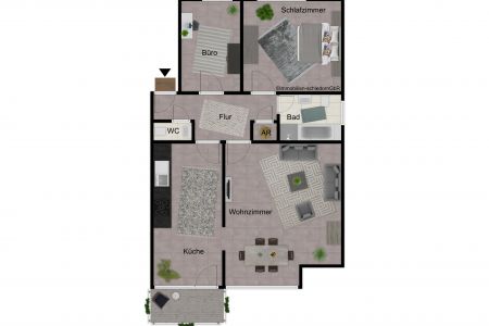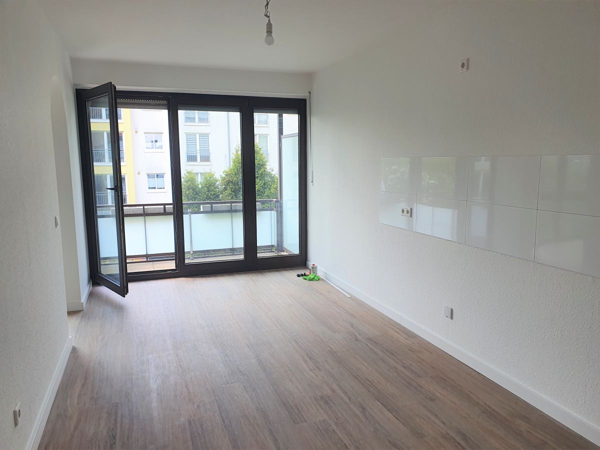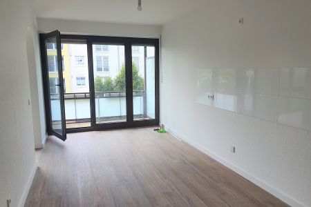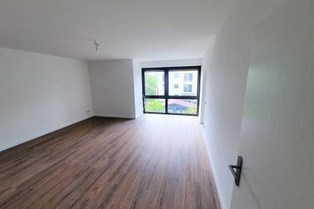 Neben der Küche finden Sie das Wohnzimmer, mit genügend Platz für eine Sofalandschaft und einen Essbereich. Zudem ist der Raum durch die großen bodentiefen Fenster stets von Tageslicht durchflutet. Angrenzend finden Sie das Tageslichtbad, welches über eine Dusche und Badewanne verfügt und ebenso wie das Gäste-WC mit modernen Armaturen ausgestattet wurde. Abschließend finden Sie das Schlafzimmer. Auch hier gibt es ausreichend Platz zur freien Gestaltung. Die Wohnung ist mit Fußbodenheizung ausgestattet.