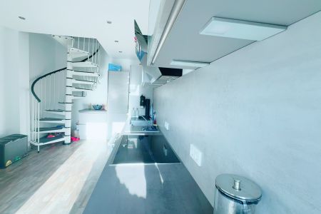 genehmigten Durchbruch zu einer Maisonette-Wohnung zusammengeführt.