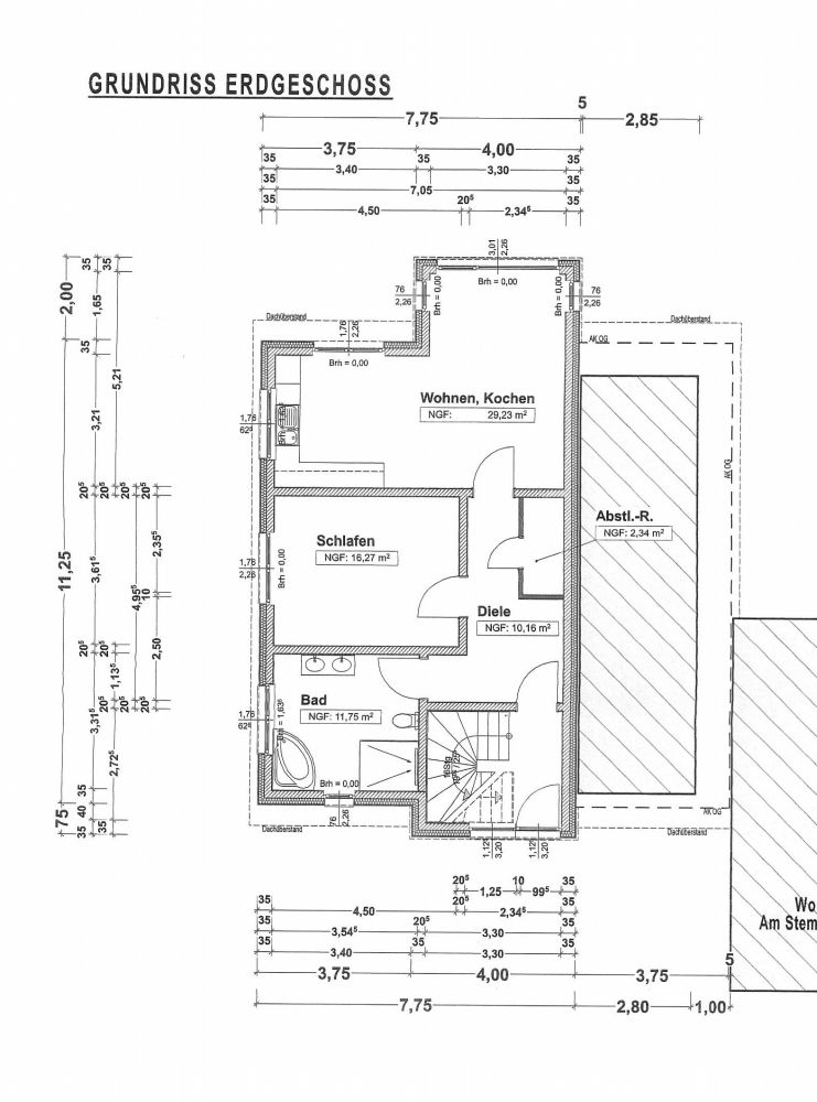 Die Bebauung ist nur angrenzend an das bestehende Gebäude in Form einer Doppelhaushälfte möglich.