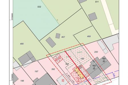 Ein genehmigter Bauvorbescheid zur Errichtung eines 1 bis 2-Familienhauses mit Keller und Satteldach incl. 2 Garagen liegt vor.