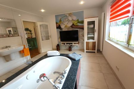 - 1 Spa-Badezimmer mit freistehender Badewanne, Tageslicht und TV!