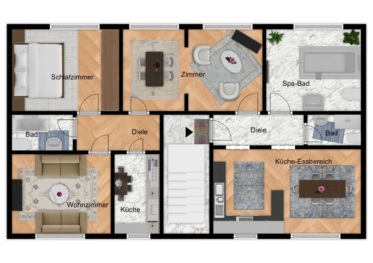 - Hochwertige Bodenbeläge, Parkett oder Fliesen