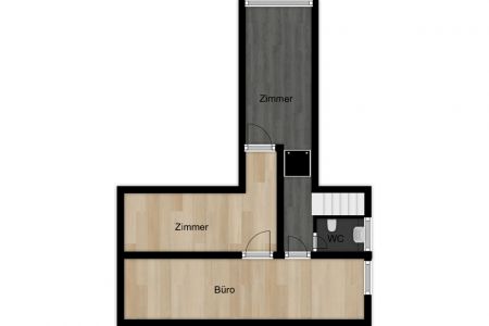 Über eine schicke Holztreppe gelangt man vom Flur aus in den voll ausgebauten Dachboden, Nutzfläche, mit weiteren zwei Zimmern und einem kleinen WC.