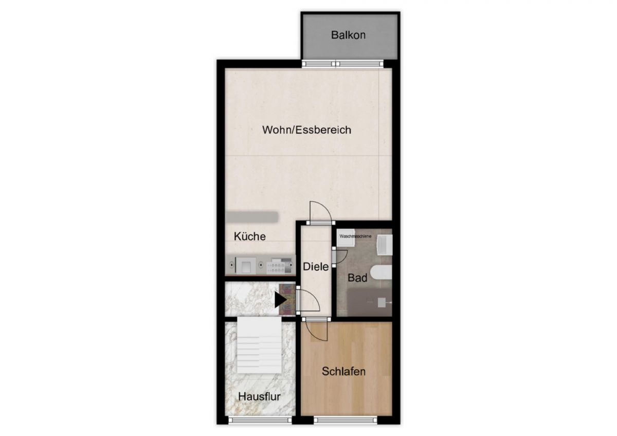 Diese kleine, aber gut aufgeteilte Wohnung bietet einer Einzelperson oder auch einem Paar ein gemütliches Zuhause.