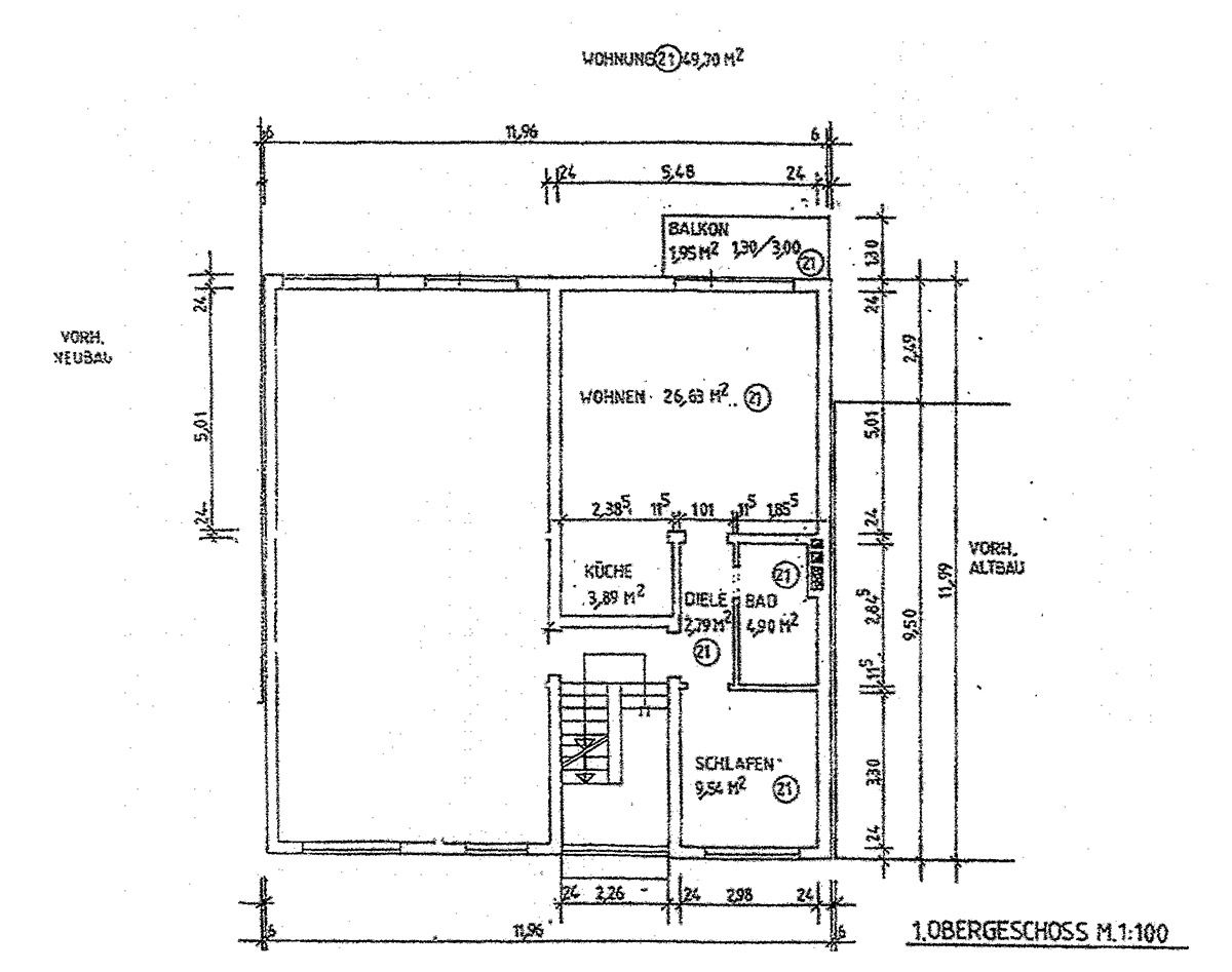 Sie verfügt mit ca.50 m² Wohnfläche über ein schönes Wohnzimmer mit offener Küchenzeile und Theke. Diese könnte nach Absprache übernommen werden. Von hier gelangen Sie auch auf den schönen Balkon. Hier können Sie Ihren Feierabend genießen.