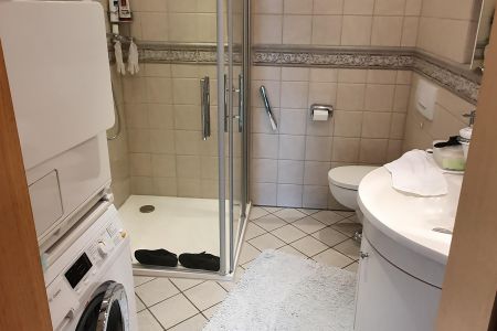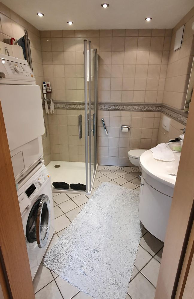 Zwei gut geschnittene Schlafzimmer bieten ausreichend Platz für individuelle Wohnbedürfnisse und Rückzugsmöglichkeiten. Das zeitlose, innenliegende Badezimmer ist mit einer begehbaren Dusche ausgestattet und bietet zudem praktische Stellmöglichkeiten für eine Wachmaschine und einen Trockner. Ein separates Gäste-WC ergänzt den Komfort dieser Wohnung.