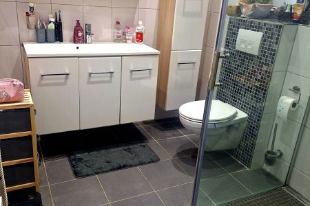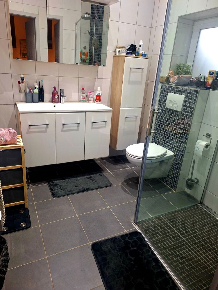 sowie ein modernes Tageslichtbad mit Dusche, das durch seine helle Gestaltung überzeugt.